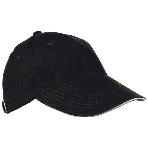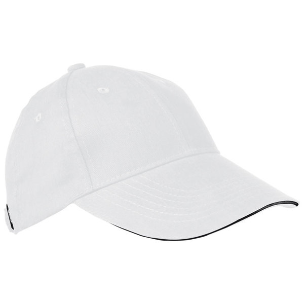 Bawełniana, 6-panelowa czapka z daszkiem typu sandwich, regulowana za pomocą metalowego zapięcia. Dostępna w kilku wariantach kolorystycznych.