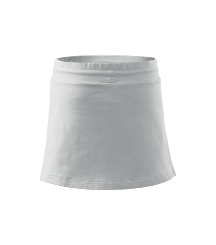 Spódnica damska z wszytymi szortami z tego samego materiału. Tkanina z dodatkiem elastanu, dzięki któremu ubranie się nie odkształca. Sznurek w pasie – do regulacji rozmiaru. Trapezowy krój spódnicy zapewnia swobodę ruchów.